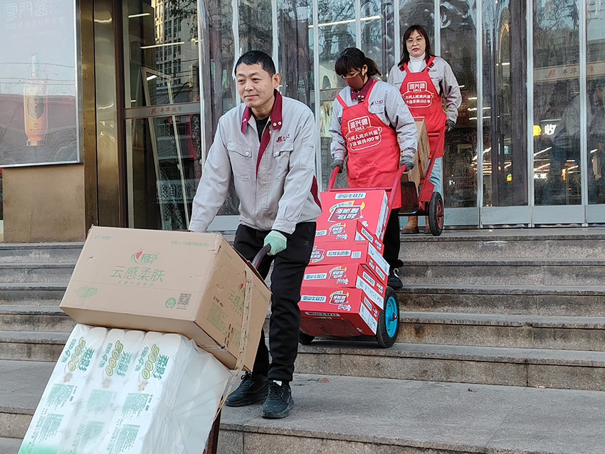 12月31日,民生店同事們齊心協(xié)力,利用開(kāi)店前時(shí)間,裝配團(tuán)購(gòu)商品,確保團(tuán)購(gòu)業(yè)務(wù)及時(shí)配送。