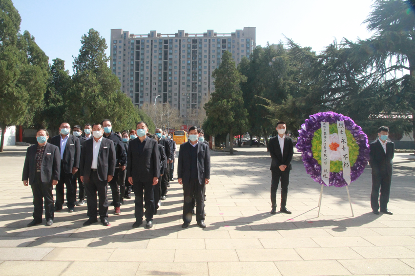 清明將至,為緬懷先烈革命,接受黨史教育,繼承革命傳統,3月30日下午,濰坊豐華(集團)公司黨委組織黨員和青年職工代表前往濰坊烈士陵園舉行清明祭掃活動。祭掃儀式現場莊嚴而肅穆,國歌奏起,全體人員在紀念碑前整齊列隊,向革命烈士敬獻花圈并默哀,致以最深切的悼念和最崇高的敬意。